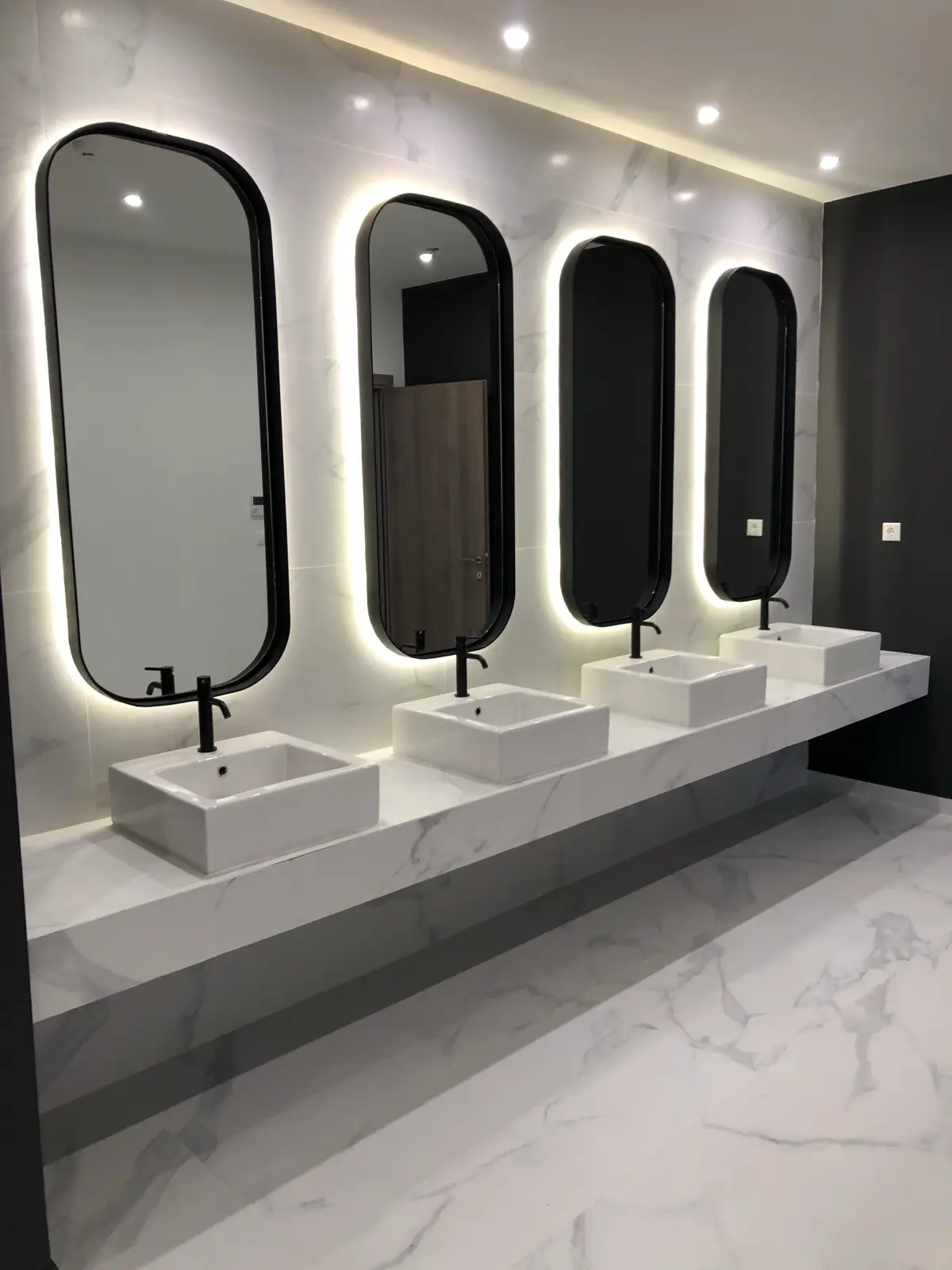 - Καθρέφτες ξενοδοχείων & spa: Δημιουργούμε μοναδικές λύσεις που προσθέτουν πολυτέλεια και λειτουργικότητα.